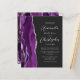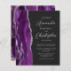 Den lämnat kant i eleganten i den moderna bröllopsinbjudan har en lila vattenfärgsagat gräns som trimmas med faux silver glitter. Anpassadet kombinerar skriptet silver grått och sans serif typsnitt på en svart bakgrund. Den omvända sidan har en matchande lila- och silver-agate-design.