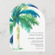 Fånga den tropiska charmen från ett strandbröllop i Florida med dessa moderna bröllopsinbjudningar, med en unik bågdesign och handmålad vattenfärgsgrafik från handflatan träd i mjuka skuggor av blått, turkos och grönt. Den här inbjudan inspireras av Nyckel Väster pulserande energi och förenar öelegans med contemporary stil - perfekt för tropiska bröllop eller målbröllop. Den särskiljande bågformen tillför en ny vändning till det traditionella bröllop-kontoret och ger par ett utmärkt utseende för sin speciella dag. Utforska fler exempel på inbjudan till destinationsbröllop och samordna designen från Victoria Grigaliunas på www.zazzle.com/dotellabelle.