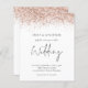 Ett ekonomiskt alternativ i BUDGET på en mindre storlek på 4,5 x 5,6 tum (110 lbs vikt), som är av samma tjocklek som ett vykort (är dock inte lämpligt för använda som vykort). OBSERVERA ATT DET FINNS EN inbjudan per lakan. Bröllopsinbjudan Ro Guld Glitter. Ett handskriftsskript i stil för Bröllop och resten av texten som du lätt kan anpassa, med ett faux glitter gräns i ro guld överst i kant på båda sidor.