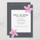 Grått bröllopsinbjudan med rosa blommor. Modern och minimalistisk bröllopsinbjudan.