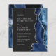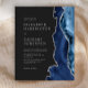 Högerna kant i denna elegant innehåller en modern bröllopsinbjudan en marin blå vattenfärgad agat gräns som trimmas med faux silver glitter. Anpassadet kombinerar silver grått serif, copperplate och italic typsnitt på en skiffersvart bakgrund. Den omvända sidan har en matchande marin blå och silver-agate-design.