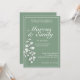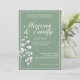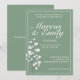 Söt, modern, minimalistisk bröllopsinbjudan har trendigets grundläggande grönt med enkel vit blommigt och textblock för anpassade i modernt typsnitt