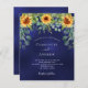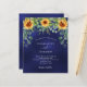 Dekorerad med solblommor, eukalyptus greenery. Den blå färg är ojämn. Anpassa och lägg till information om namn och party.