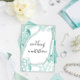 Bröllop 3D-effekt Vit Mint-Grönt Ram Inbjudningar