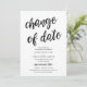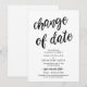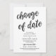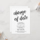 Detta är ett bröllopskort för uppskjutna bröllop, med korttitel, ändring av datum, i svart typsnitt, modern rustic-tema.