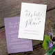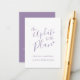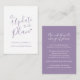 Uppdatering av annulleringskortet för bröllop ingår i matchningen av enkel lila av typografiskt hjärta, grått white bröllop. Perfekt för använda som ett informationskort för bröllop för att informera dina gäster om en inställd bröllop eller inställd händelse eller om en omschemaläggning. Andra alternativ för färg finns tillgängliga. Ursprunglig design av Sarah Trett för www.mylittleedenweddings.com på Zazzle.