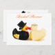 Kyssa i ankor av gummi. Top hat och svan med blomtiara. Cute bröllopsinbjudning eller kort som kan anpassas med din egen text, namn, datum och bilder.