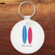 Personlig bröllop eller årsdag som surfar på nyckelring med två gåvor. Nyckelringen visar en blå och en rosa surfbräda och rymmer namn om make och hustru, liksom deras datum i bröllop. Perfekt för par som kärlek sjövägen, vågar och långborden. Det finns också ett matchande kort i den här roligten och i modern design.