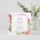 Meddelandet om bröllopets avbokning med luftiga rosa rosor, burgunderfärgade blommor, frodig grönska och gyllene ram är mycket romantiskt, perfekt för att informera dina nära och kära om bröllopsdatumets uppskjutande. Lätt att anpassa.