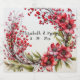 Söt champagne märker en krans med röda blommor, röda bär, pinnar och vrister. Lägg till datum för namn och bröllop. #generativeccontent