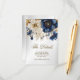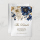 Kortet för den blå gulvita Blommigten Silver i marinblått bröllop. Unik, vacker utformning av snyggten. Lätt att vara personlig. Teckensnittet stil, storlekt och färg kan ändras. Matchande objekt är tillgängliga.