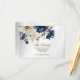 Kortet för den blå gulvita Blommigten Silver i marinblått bröllop. Unik, vacker utformning av snyggten. Lätt att vara personlig. Teckensnittet stil, storlekt och färg kan ändras. Matchande objekt är tillgängliga.
