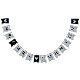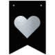 En banderoll för flaggor för ett bröllop med svart och silver bröllop med färg, med ord "Mr. Och Mrs" och familjen namn till det nya paret och tre hjärtan. Texten står i svarta prickar på folie faux silver, hjärta och ampersand är faux silver foil mot svart bakgrund. Lämpligt för 7 brev namn som Johnson (standardvärdet) eller Jackson.