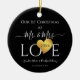 Vår första jul, Svarta Guld Heart-Namn, Ceramic Ornament | Black Guld Heart-skript Namn Mr. och designa Faux Guld-hjärtvitskript Mr. och Monogram namn Bröllop Personlig Bröllop decor och party-varor med vitt skript Guld Heart Namn bröllop Mr. och dekoration| årsdag party och Elegant wares personlig, färg.. kan du ändra bakgrundsbilden guld (utskrift foteffekt faux anpassade foil hjärta), namn med brid och trimma bröllop på svartvita skript och datum. Den här fina designen är perfekt för bröllopsmottagningar, bröllop-årsdag party och mycket annat. Använda redigeringsmenyn om du vill ändra färger eller besöka vår butik om du vill ha fler alternativ för design och färg.