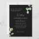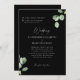Svart och vit inbjudan till eukalyptus-bröllop. Svart bakgrund. Båda uppsättningarna med överordnade listade.