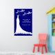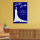 Elegant vit bröllop-klänning och vår blommar på en marin blå Möhippa Poster