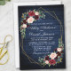 Bröllop Blommigt Blue Wood Geometric Guld Ram Inbjudningar