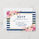 Bröllop Blommigt VattenfärgsRosa Blå Rand OSA Kort