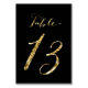 Bröllop-bordsnummer med guld-folienummer tryckta på svart bakgrund - nummer 13