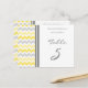 Elegant och moderna gult-, grått- och vita bordsnummer från bröllop med roligt retro chevron zigzags mönster. Anpassa korten om du vill skapa anpassningsbarnas bordsnummer-kort för varje bord vid bröllop. Lägg till datum för namn och bröllop. Mönster finns i ett stort antal matchande bröllop-produkter.