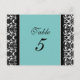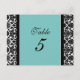 Bröllop Bordsnummer Cards Teal Damask