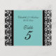 Bröllop Bordsnummer Cards Teal Damask
