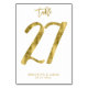 Bröllop-bordsnummer - nummer 27 - med guld-folieeffekt (faux, tryckt som en bild) och anpassade - kan du lägga till bridernas och triomens namn och bröllop på vit bakgrund