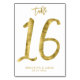 Bröllop-bordsnummer - nummer 16 - med foleffekt för guld (faux, tryckt som en bild) och anpassade - kan du lägga till bridernas och triomens namn och bröllop på vit bakgrund