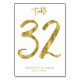 Bröllop-bordsnummer - nummer 32 - med foleffekt för guld (faux, tryckt som en bild) och anpassade - kan du lägga till bridernas och triomens namn och bröllop på vit bakgrund