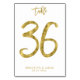 Bröllop-bordsnummer - nummer 36 - med foleffekt för guld (faux, tryckt som en bild) och anpassade - kan du lägga till bridernas och triomens namn och bröllop på vit bakgrund