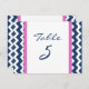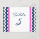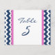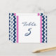 Elegant och modern fuchsia-shock rosa, mörk marinblått och vitt bröllop-bordsnummer med retro och roligt chevron zigzags mönster. Anpassa korten om du vill skapa anpassningsbarnas bordsnummer-kort för varje bord vid bröllop. Mönster finns i ett stort antal matchande bröllop-produkter.