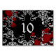 Gothic Halloween-bröllopsmottagningskort bord med grått-dammliknande mönster på båda sidor och blodstänk. Lägg lätt till rätt bord-platsnummer på den. Blodplatsen kan tas bort.