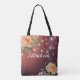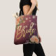 Bröllop Brides Tote Bag Templates - Faux Gold Foil Script, Elegant Watercolor Blommigt Peach Vit ros och String Ljus på Burgundy Red Damask Background. En Perfekt för din stora dag! Alla textstorlekar i Stil, Färg kan anpassas efter dina behov.