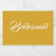 Självhäftande etiketter till bröllop-mini-mousserande vin-flaskor som har ett trendig, gyllene gult färg tillsammans med "Bridesmaid" tryckt i vitt, stiliserat skript. En underbar idé när du lägger ut dina brudtärnor och planerar för en bachelorette-fest!