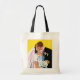 Bröllop, brud och brudgumme nygifta kysser varandr tygkasse