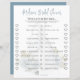 Denna design har ett bröllop brud shower spel, skulle hon hellre mall, enkel minimalistisk klassisk kalligrafi, en anpassad brud shower aktivitet papper, blå blommig bröllopsklänning klänning, anpassade brud shower fest tillbehör, enkel ifyllnad papper blad, en elegant kalligrafi typografi, blå ros grönska lövverk botanisk, anpassad brud shower utskrivbart spel