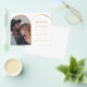 Observera att det här Spara datumet är pappert och mycket tunt. Kuvert ingår inte. Om du vill ha tjockare Spara datumkort (samma design) kan du besöka vår butik. Ett foto Spara datumet för bröllop. På framsidan: Lägg till ett eget storlekt foto för lodrät. En faux guld fotoarch ram. En klassisk vit bakgrund, gyllene text. Anpassa och lägg till namn och datum.