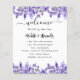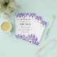 Vit elegant, dekorerad med lavender-blommigtar, blommor. Anpassa och lägga till namn och tidslinjen för bröllopsdagen. Du kan minska teckenstorleken och radavståndet om du vill ha mer storlek. Du kan också lägga till text på baksidan.