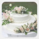 En vackert dekorerad bröllop-kaka försedd med delikat ro och grön.