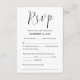 Det här är det vackra Modern, bröllop Calligraphy-typo, Elegant OSA-kortet (responond), i svart typsnitt, där du kan redigera, ändra färg och formatera det enligt ditt designkrav, med måltider, reserverade sittplatser, nummer som deltar och alternativ som kräver sång. #TeeshaDerrick