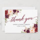 Modern Elegant Calligraphy, Watercolor Burgundy Blommigt Bröllop - tackkort - Burgundy Script, Burgundy Back
