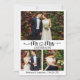 Modern minimalistisk enkel calligrafi-skript Heart Mr. och Mrs. Bröllop Bride and Groom 3 Photo Tack You Card Card