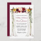 Elegant bröllop Canopy Watercolor Burgundy Marsala Blommigt Bröllopkort omfattar vackert burgundy ro, rosa ros, röd ros och solblommor. Träets kanopy-båge i bröllop omfattar botaniskt grönt.