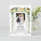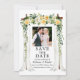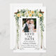 Elegant bröllop Canopy Watercolor Gult White Blommigt Bröllop Förlovning Announcement Save Datakortet innehåller vackert gul ros och vit ros. Träets kanopy-båge i bröllop omfattar botaniskt grönt. Ett foto.