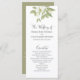 Sage Grey Traditional bröllop ceremony programme with sage löv foliage and simple baby utandningsblommor. Med elegantens kalligrafi. Den här mallen ger utrymme för ceremonier och bröllopsfester.