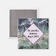 Skapa en unik bröllopsförmån med den här kylmagneten. Bakgrunden till denna magnet har ett vackert, närliggande foto av en lila, grönt och gult som strimlat biet av fluoritmineral. En diamant i mitten ger en solid bakgrund för namn och bröllop. Både textbakgrunden och den heltäckande bakgrunden för lila av blek kan vara personlig till kostym som du behöver.