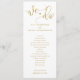 Moderna Bröllopsprogram - Bounderkalligrafi (Flat Guld): Det här långa bröllopsprogrammet har två sidor. På framsidan finns er namn, bröllop-datum och ceremonin. Baksidan har gott om plats för en fullt bröllopsfest. Den flytande moderna studentkalligrafin anger tonen för en roligt, avslappnad-händelse. Ändra färg i designen och texten till vad du vill! Välj bara en ny fyllning i färg. Du kan till och med ändra hela bakgrunden färg och göra texten vit för att få en unik effekt.