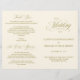 Detta är det folkliga programkortet för ceremonin i bröllop, som det klassiska elegansprogrammet Guld färg. Det är designat med rullans accenttecken som kan vara personlig med anpassningsbar/ personlig för brudens sida, ceremonidetaljer, minnesanteckningar och tack. ** Obs! Dessa pappra textviktsprogram anländer jämnt och kräver vikning för att samlas ihop.