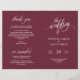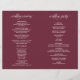 Det här är det folkliga programkortet för ceremonin i bröllop, i elegansskript i temat Burgundy färg. Det är designat med rullans accenttecken som kan vara personlig med anpassningsbar/ personlig för brudens sida, ceremonidetaljer, minnesanteckningar och tack. ** Obs! Dessa pappra textviktsprogram anländer jämnt och kräver vikning för att samlas ihop.