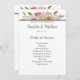 Ett Bröllop Ceremonisprogram designat med ett Blommigt Cluster of Watercolor Rosa ros med grönt accents. Texten innehåller: Bride and Grooms Namn, Bröllop Date and Order of Service på vit bakgrund. I den omvända texten ingår: Föräldrarna Namn, Bride och Groom’s Bröllop Attendants och tjänstens kontor. Om du vill anpassa dig infogar du helt enkelt all information i vår enkla mall och ersätter exempeltexten.